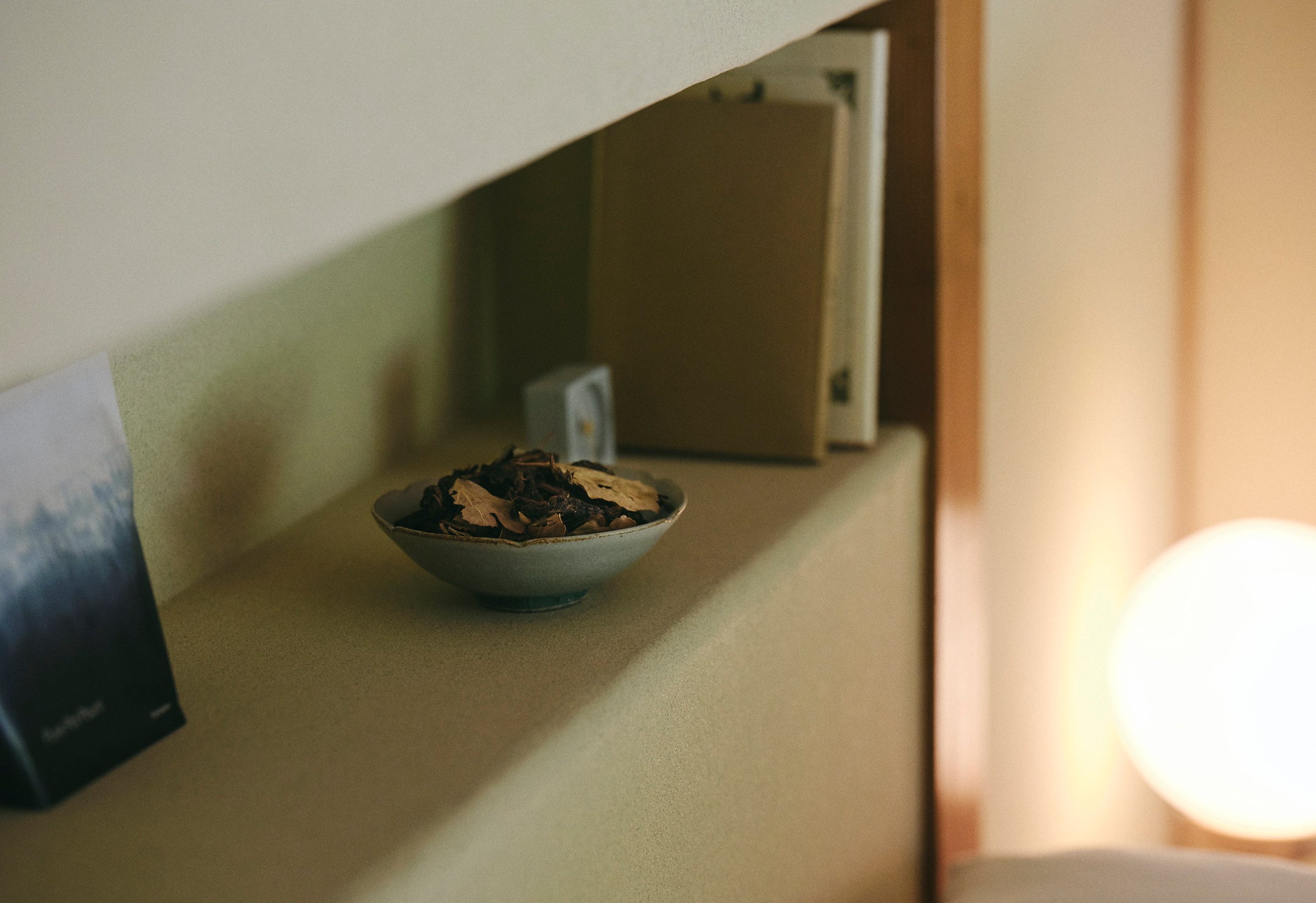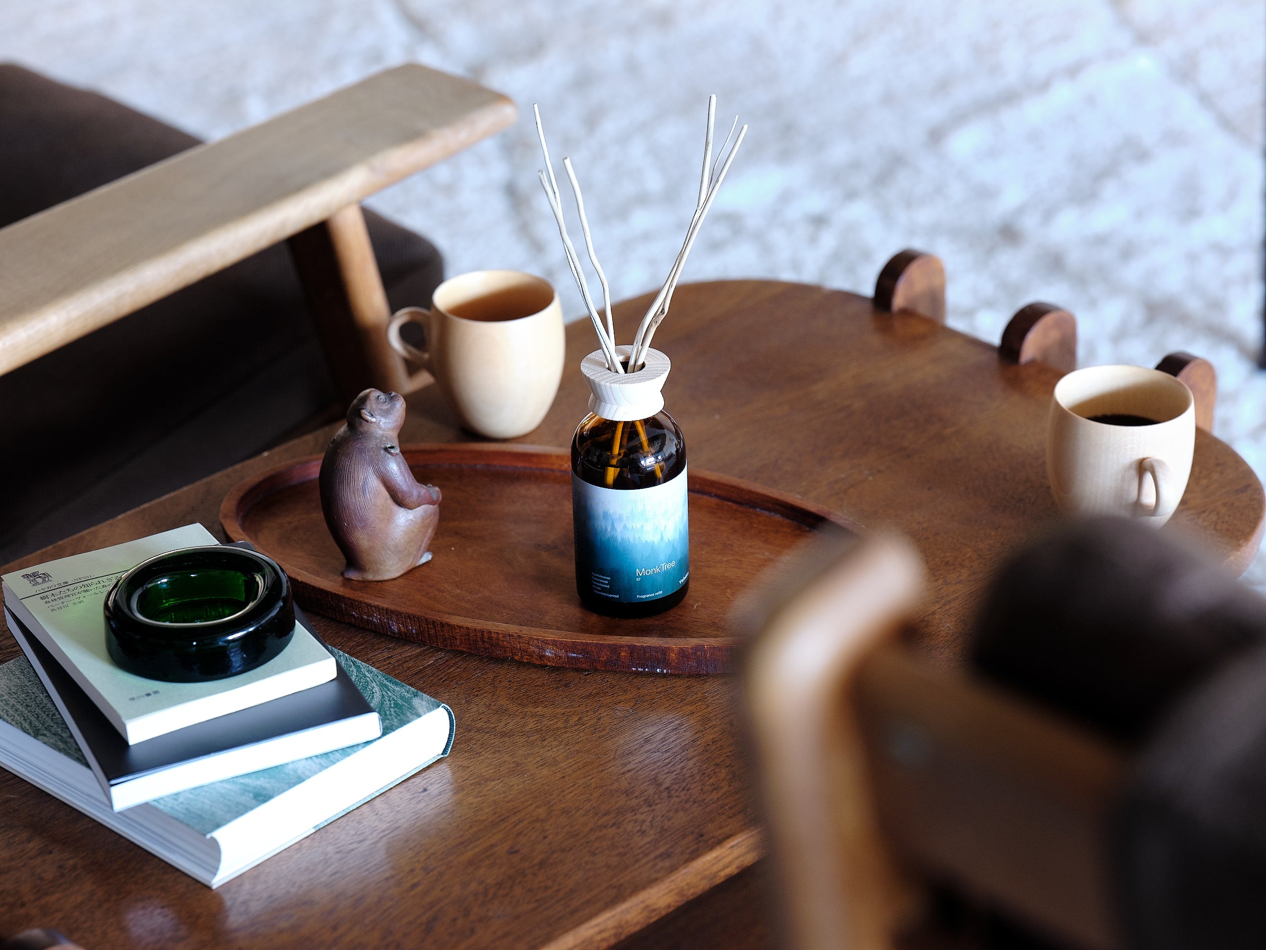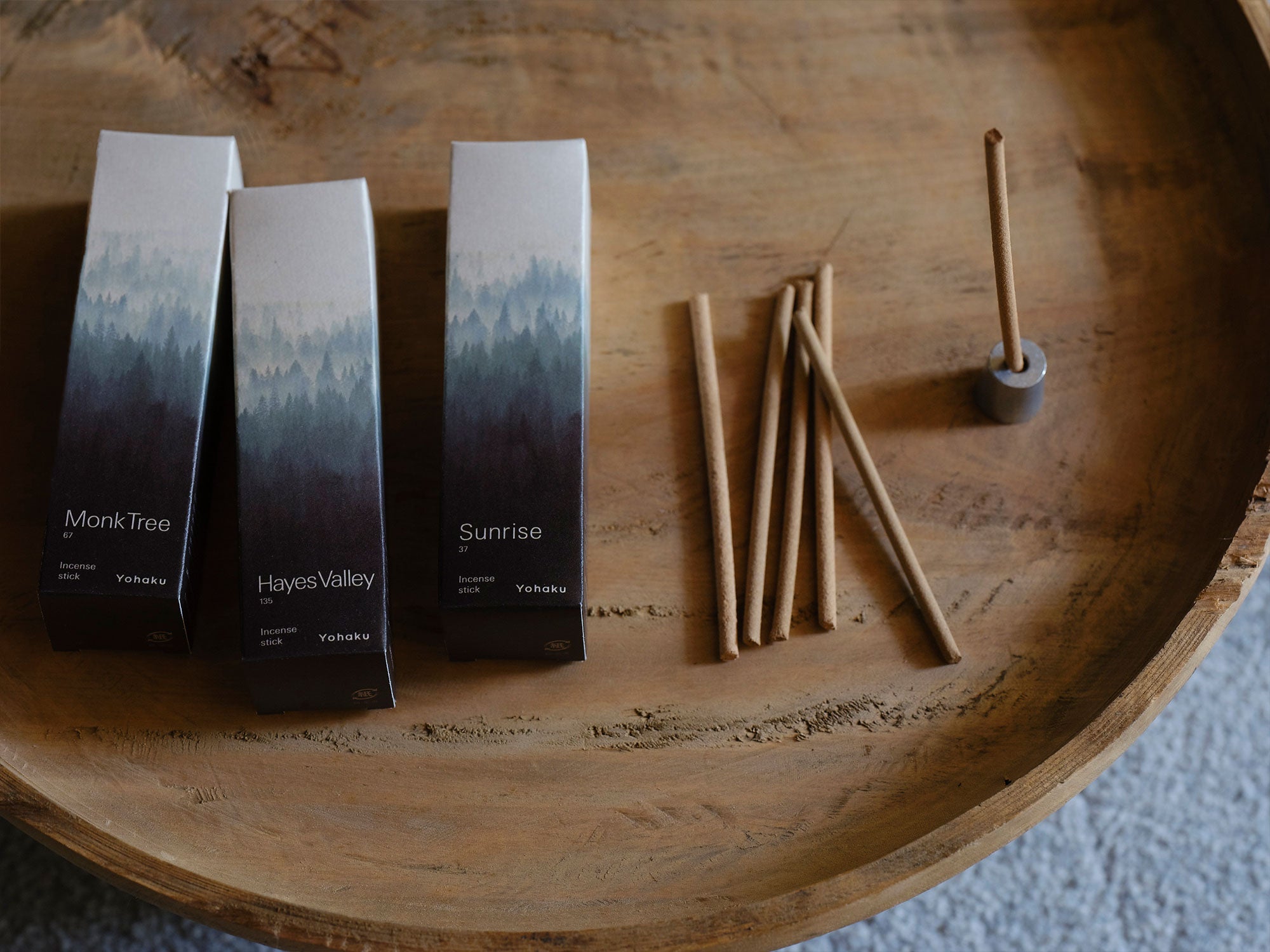 5種類のオリジナルブレンドの香りを軸にした、ステックタイプのお香や、ヒノキを豊富に使用したコーンタイプのお香など、厳選した天然香原料のみを使用した自然の香りをお楽しみいただけます。